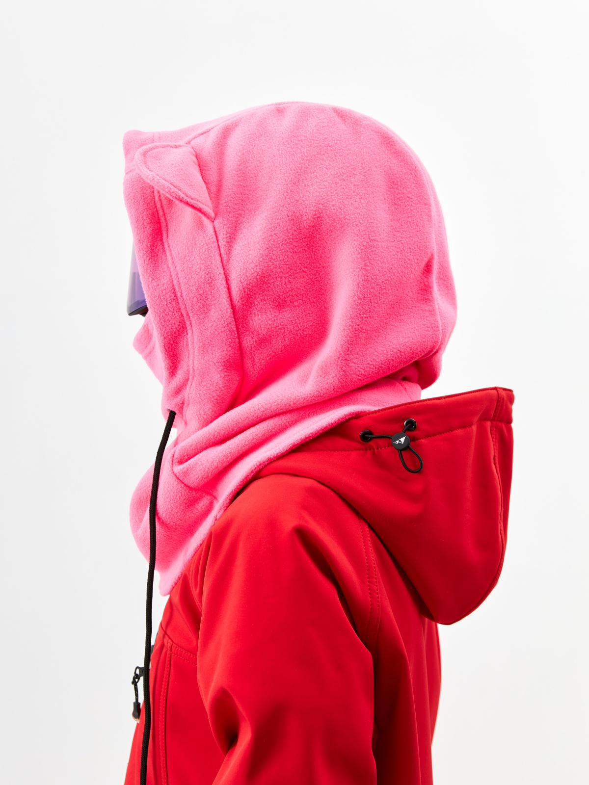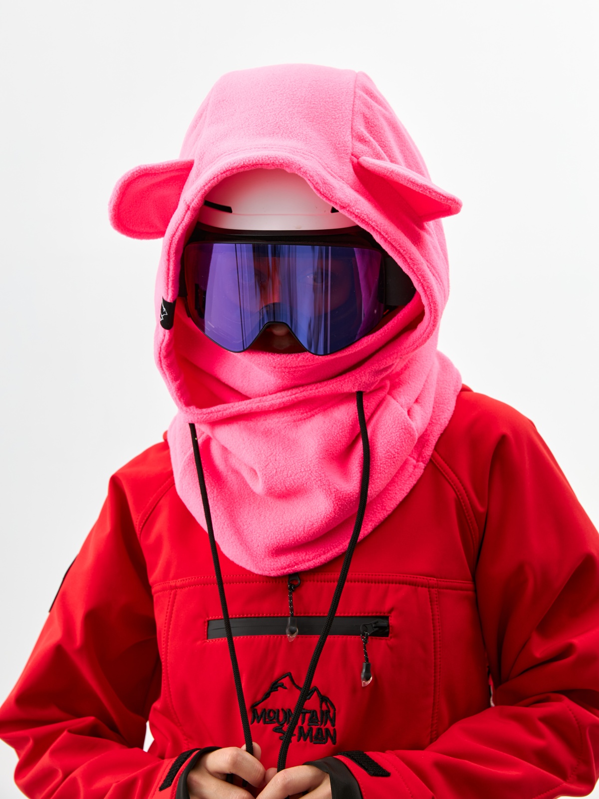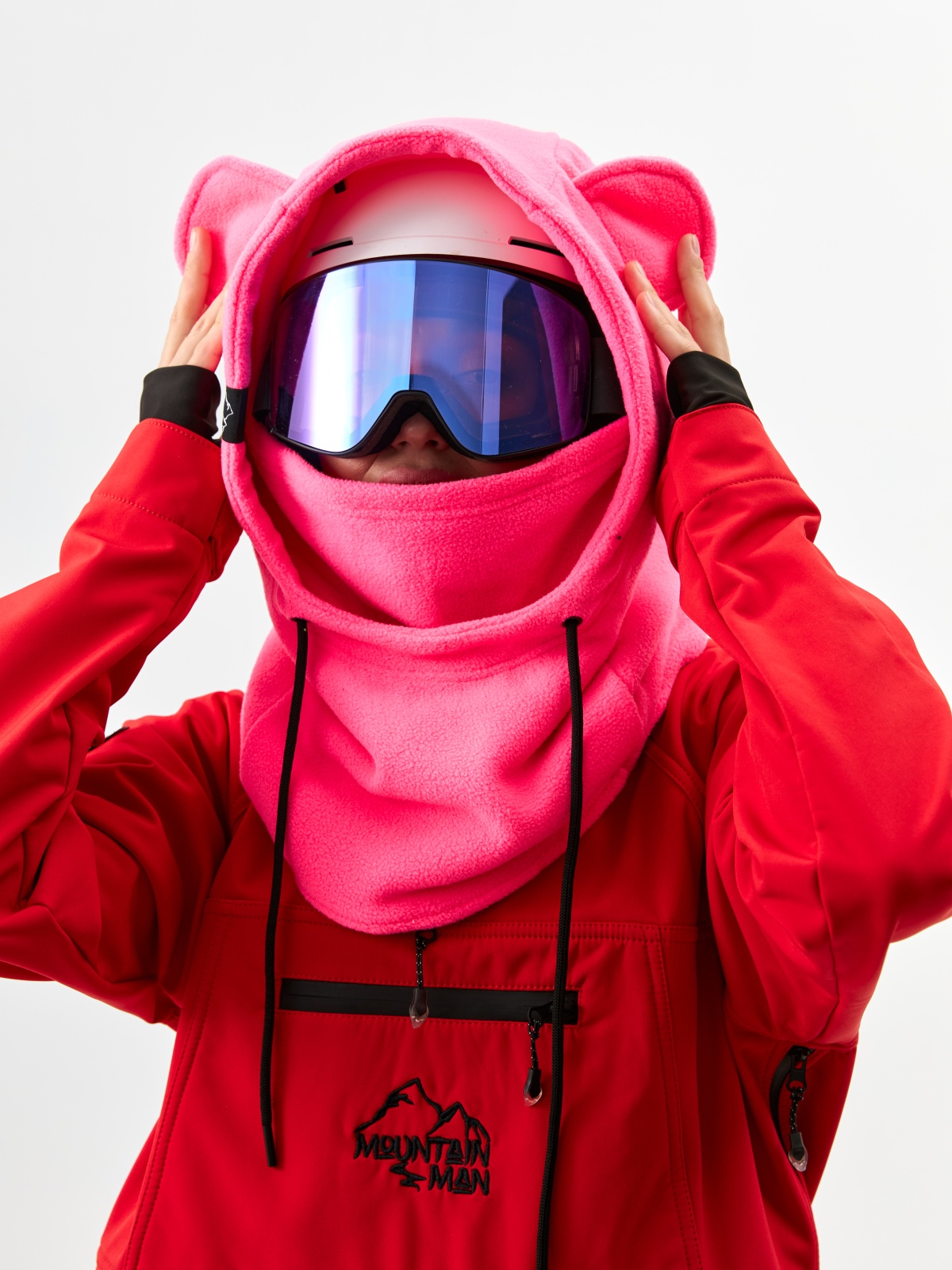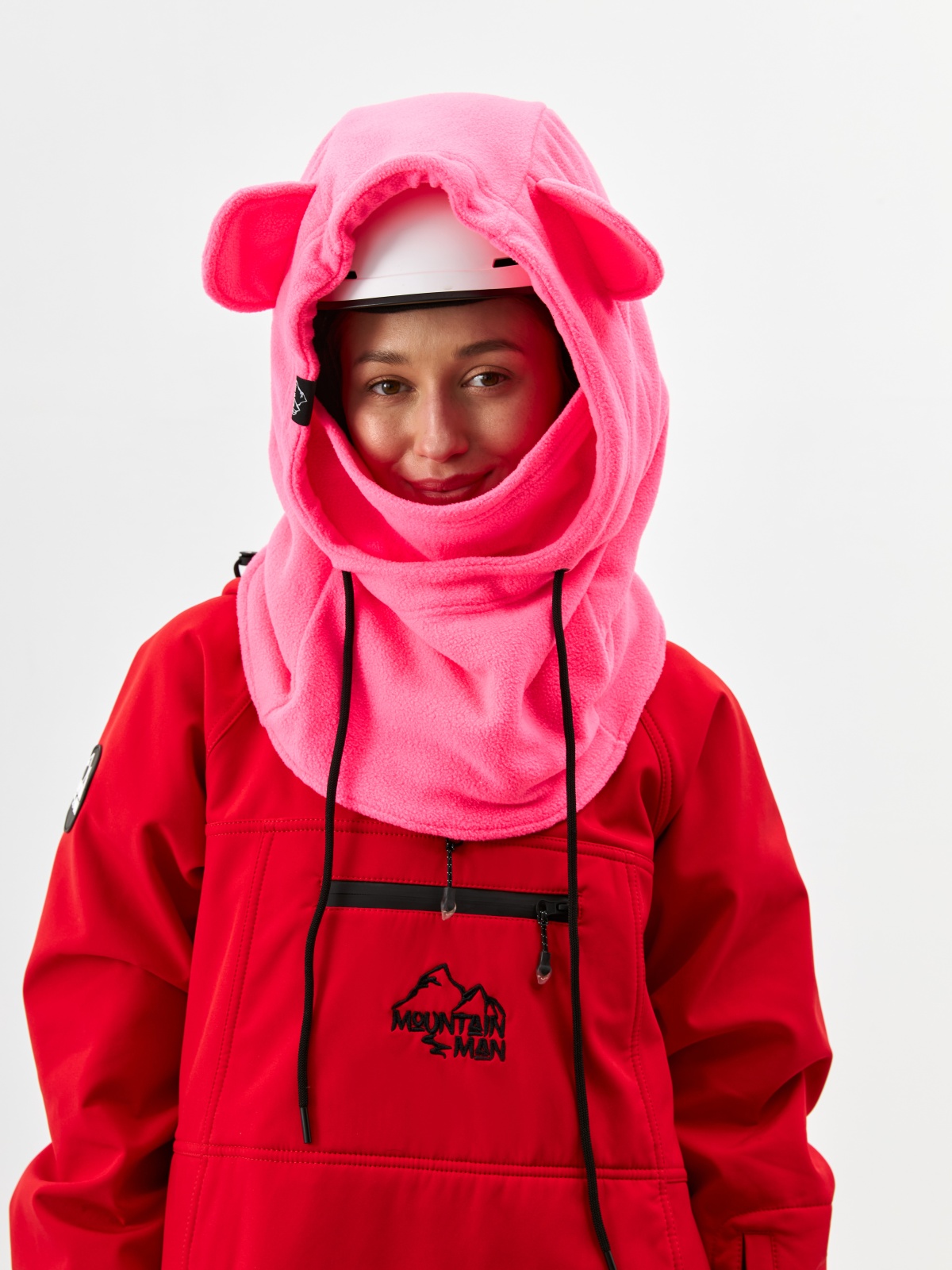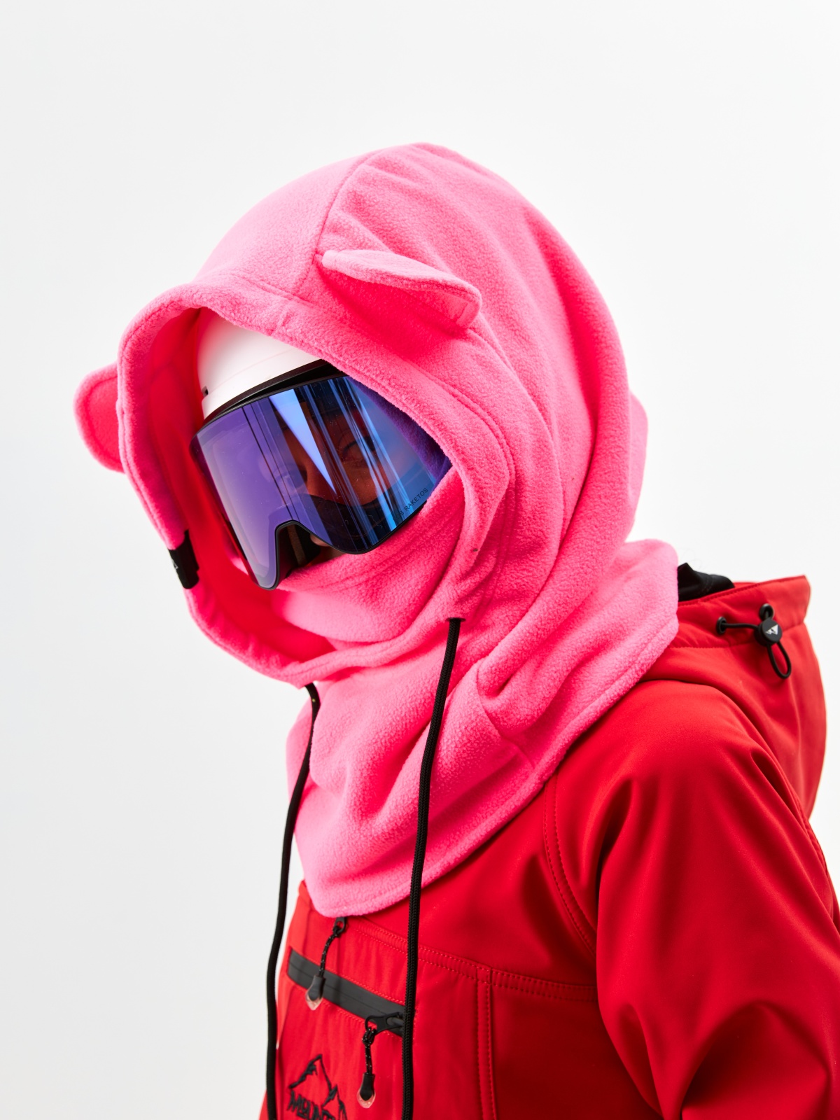 - Детали с характером: ушки медвежонка превращают балаклаву в запоминающийся элемент зимнего гардероба.