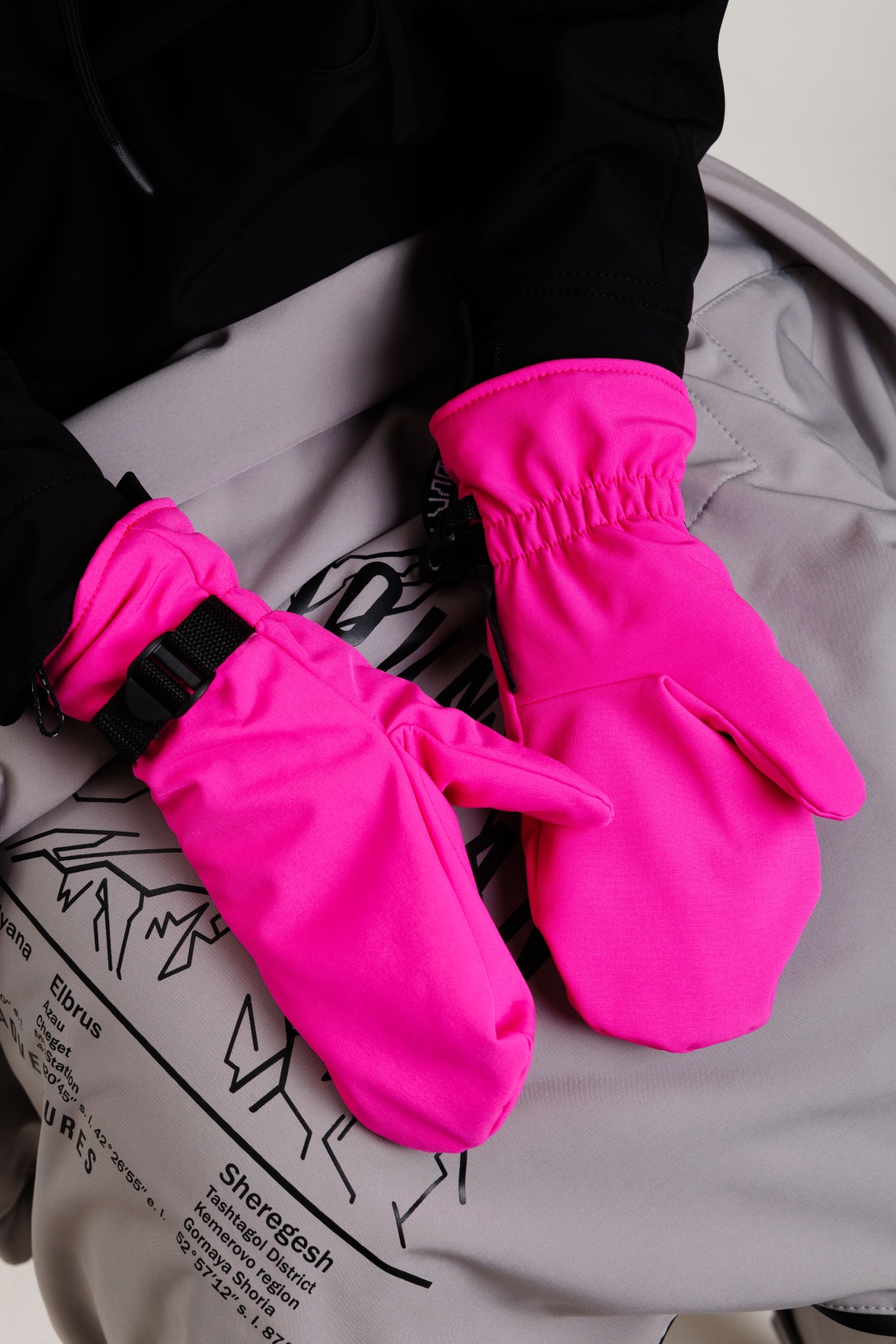 • Резинка и стропа на запястье: препятствуют попаданию снега внутрь варежек, обеспечивая дополнительную защиту.