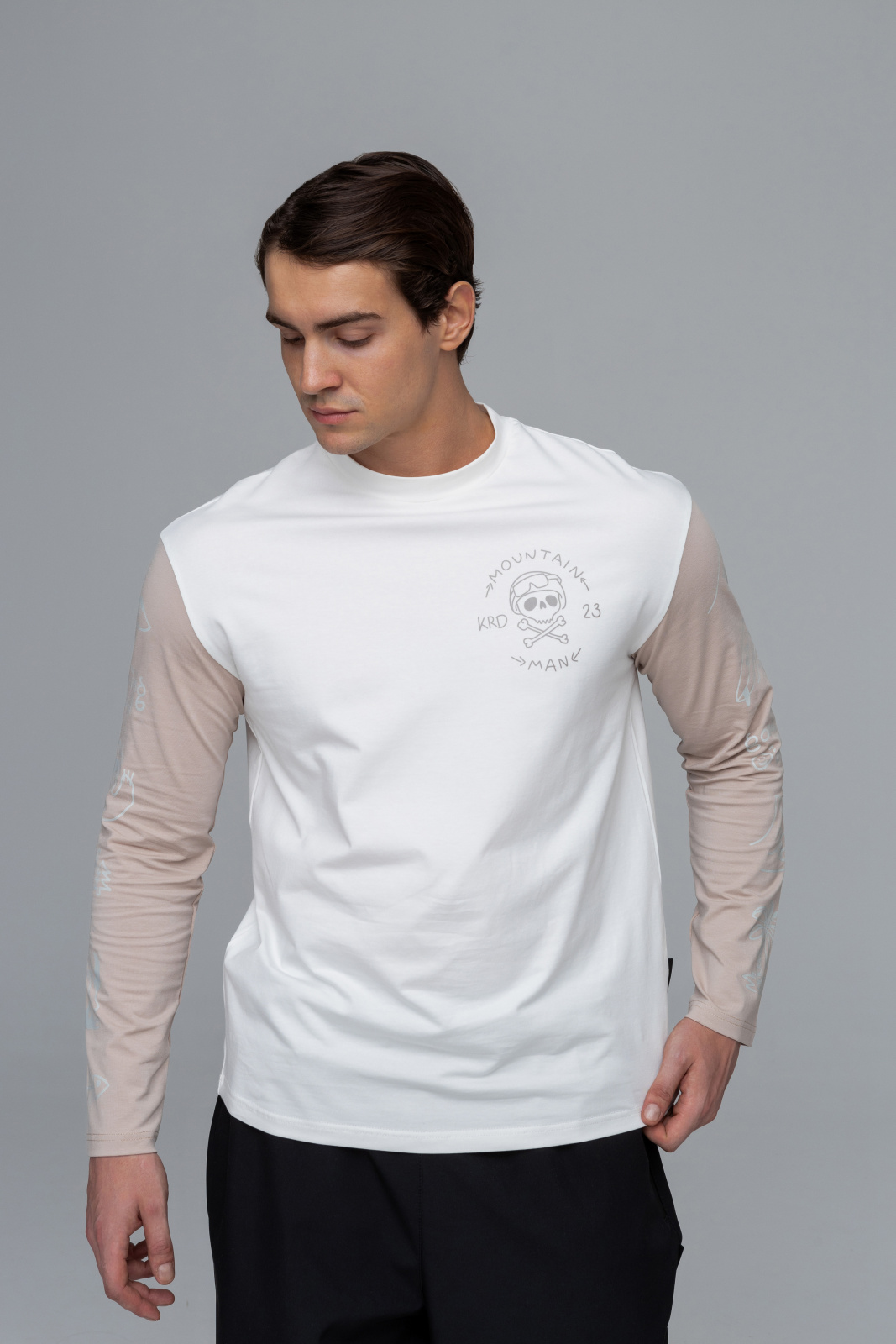 Модель изготовлена из приятной к телу кулирной глади (92% хлопок и 8% эластан), что обеспечивает лёгкость, воздухопроницаемость и эластичность. В лонгсливе комфортно в температурном диапазоне от +15 до +30°C — он идеально подходит как на тёплый день, так и в прохладный вечер. Принт на груди добавляет индивидуальности и акцентирует внимание на образе.