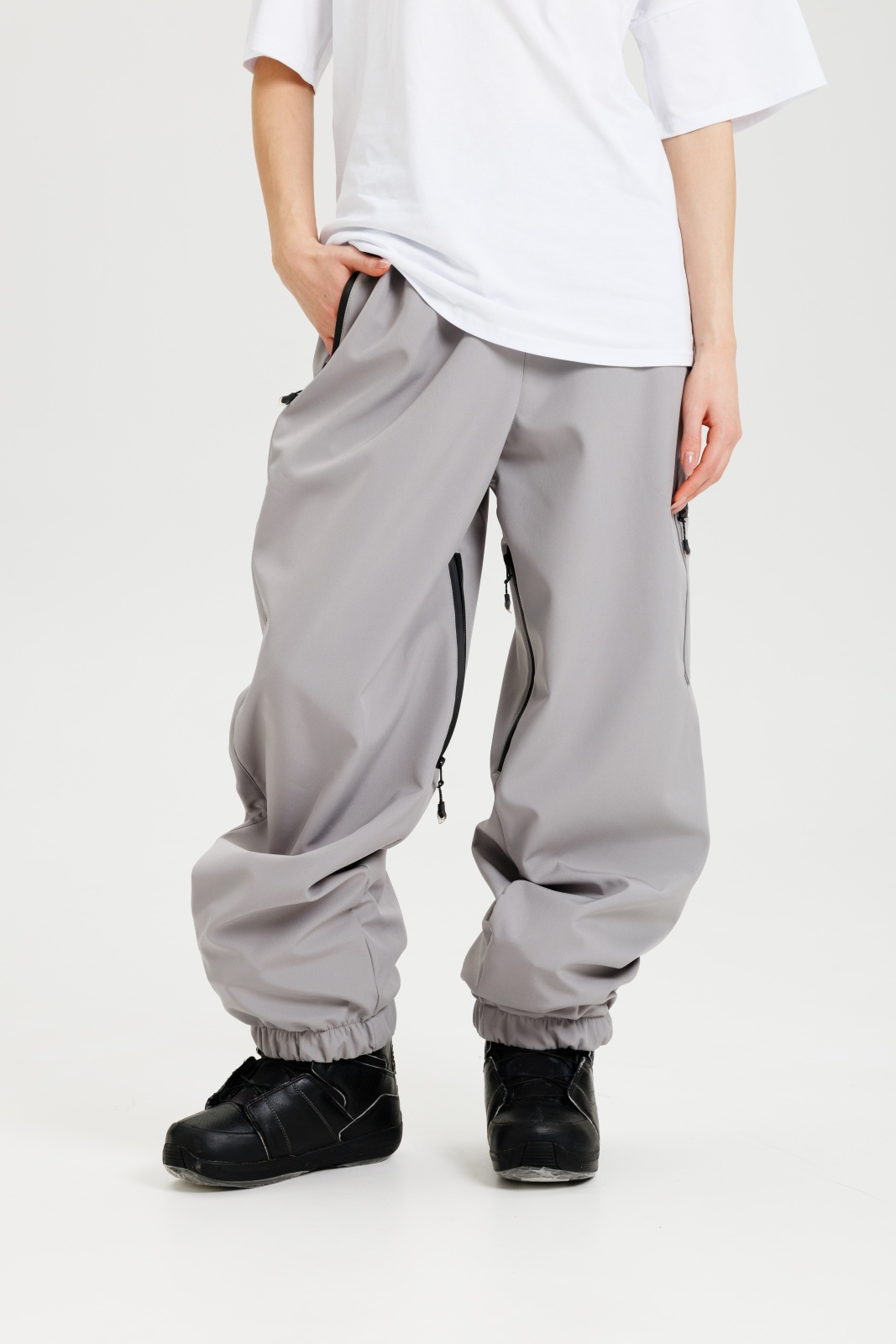• Крючки для крепления штанин к сноубордическим ботинкам обеспечивают надежную посадку.