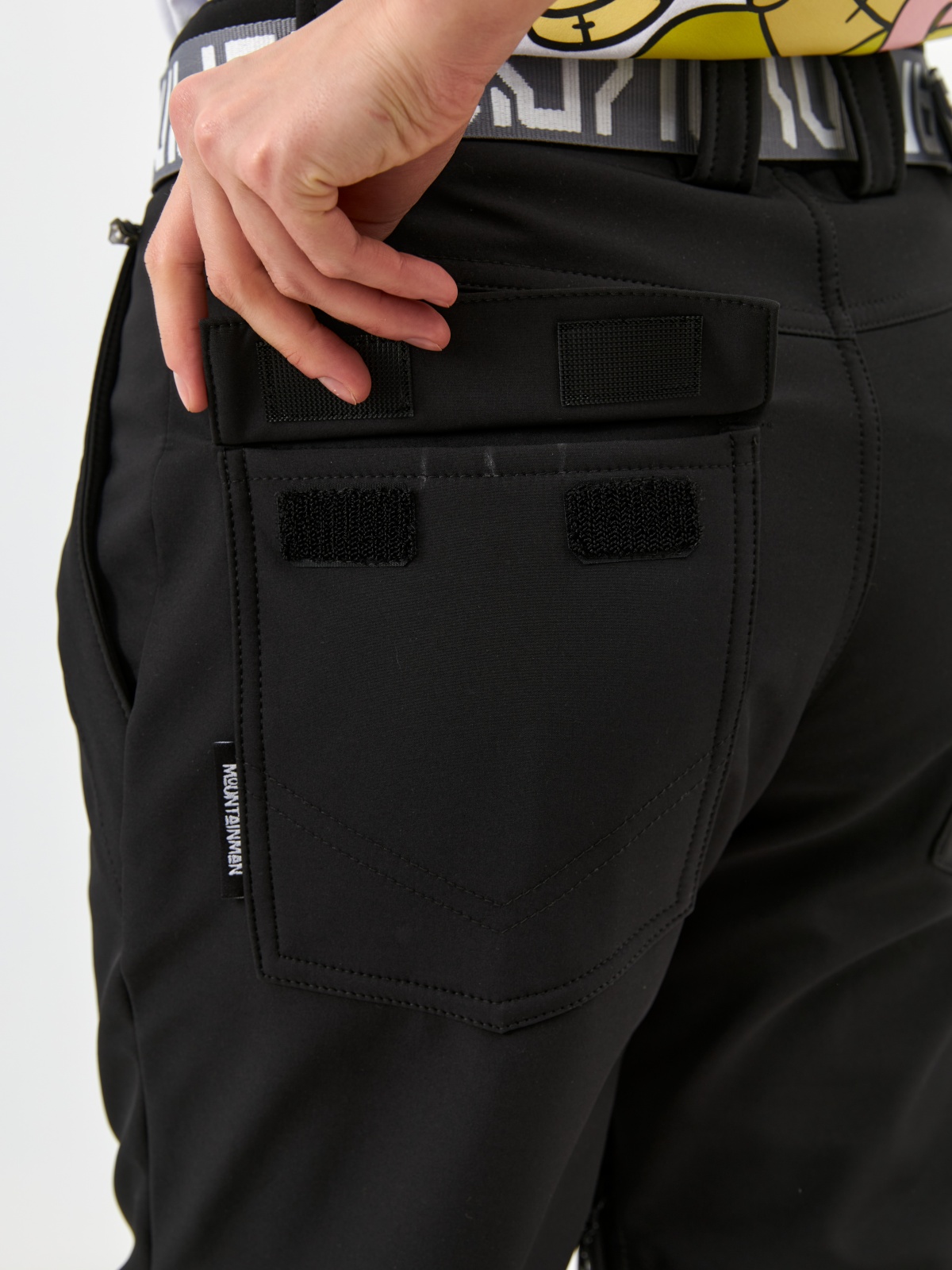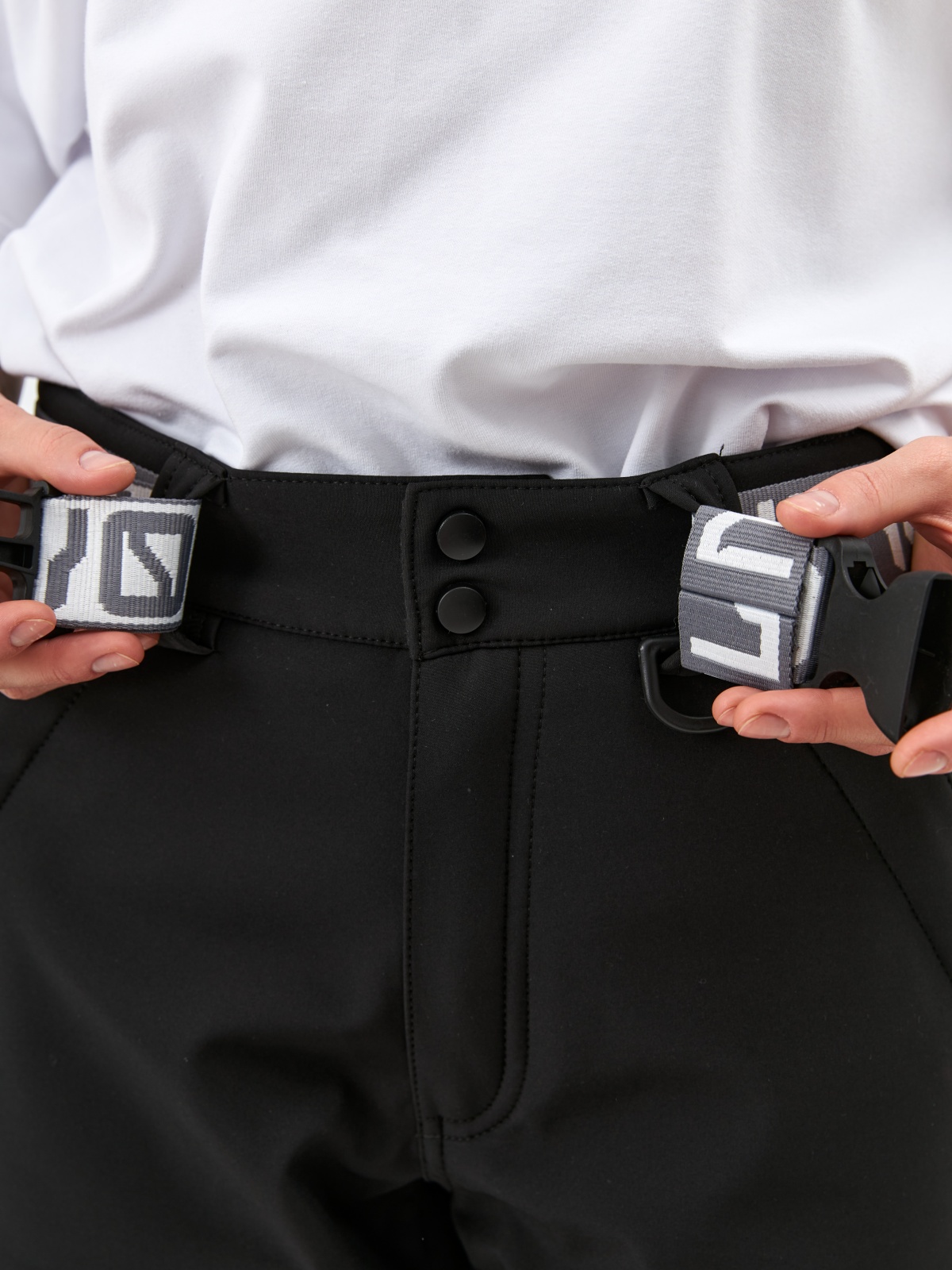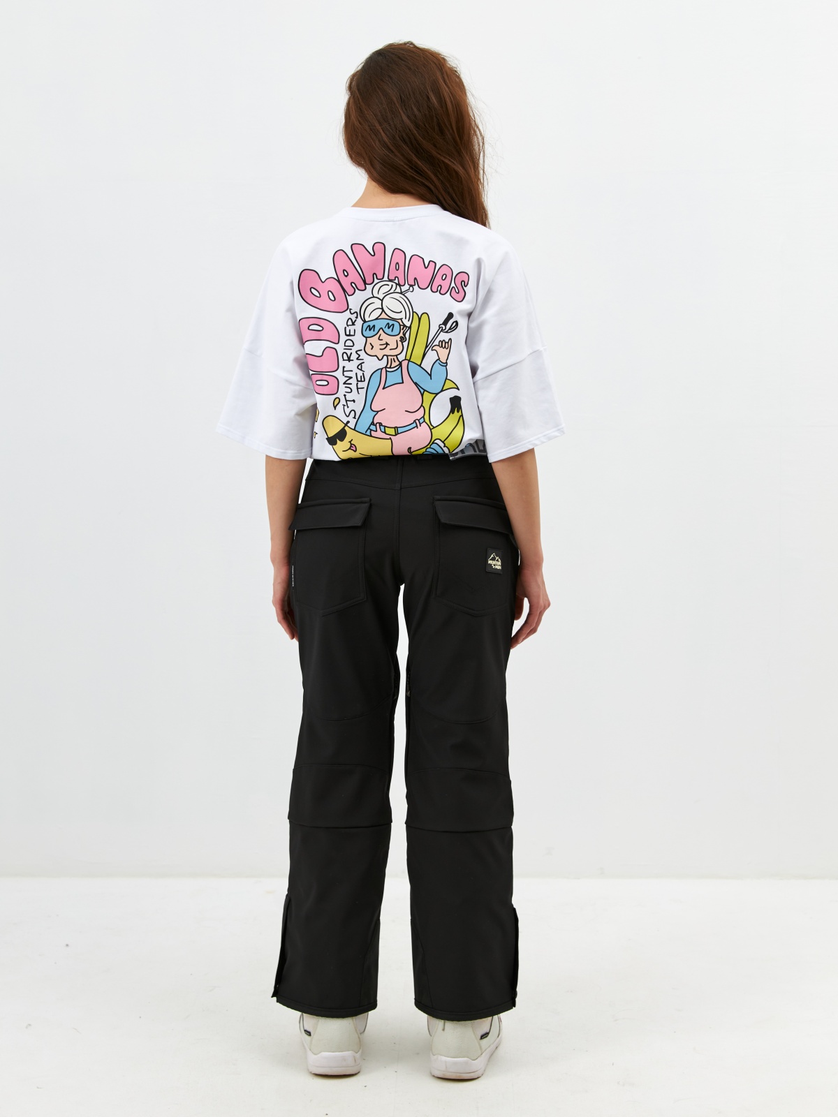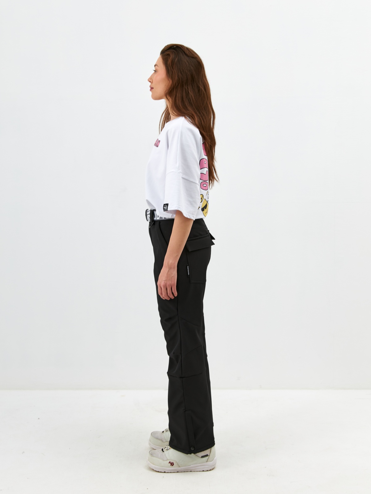 • Клиновидные вставки с кнопками для регулировки низа штанины под сноубордический ботинок.